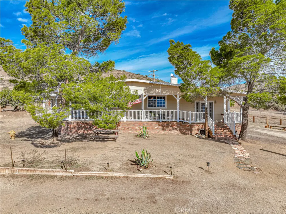 Nestled on a fully fenced 2.5-acre lot, this charming cottage ranch home offers breathtaking mountain and canyon views, blending rustic character with modern upgrades as a result of a major remodel in 2006. A spacious wrap-around covered porch, accessible through French doors from the master bedroom, invites you to relax and take in the stunning surroundings. Inside, the light and bright country kitchen opens to a formal dining room, while the step-down living room features a cozy two-sided fireplace, tongue-and-groove beamed ceilings, and rich knotty pine floors throughout. This thoughtfully designed home includes double master bedrooms plus a large office, retreat, or nursery with built-in desk and shelving. Modern comforts abound, with owned solar panels, a new electric panel, and a SimplySafe alarm system. The home is equipped with a Pelican (Pentair) water filtration and softener system, a Rinnai tankless water heater, and LED lighting throughout. Recent upgrades include resurfaced and sealed hardwood floors thru-out, freshly painted exterior and outbuildings, rodent-proofing, and cleaned or replaced heating and AC ducts. Additional features include an enclosed screen porch off the mudroom, a guest bathroom conveniently located near the laundry area, and outdoor structures such as a workshop and shed. A recently replaced well pump and dual water storage tanks ensure a reliable water supply. With its unique blend of character, warmth, and modern efficiency, this Acton retreat is move-in ready and waiting to be enjoyed. Don’t miss the opportunity to make it your own.